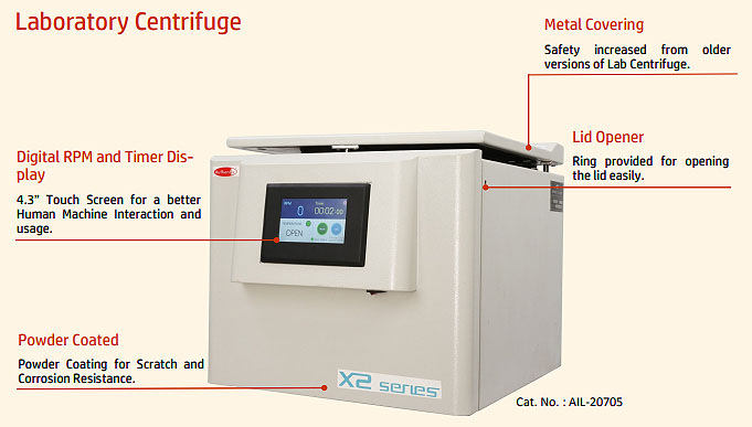 - Highest Speed of the equipment is 5500 RPM and maximum RCF (Relative Centrifugal Force) is 4574 g.