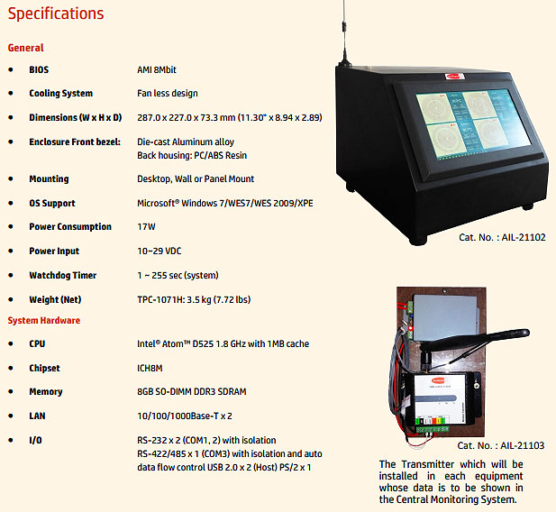 Wireless Central Monitoring System specially designed for 16 equipments based on industrial computer for