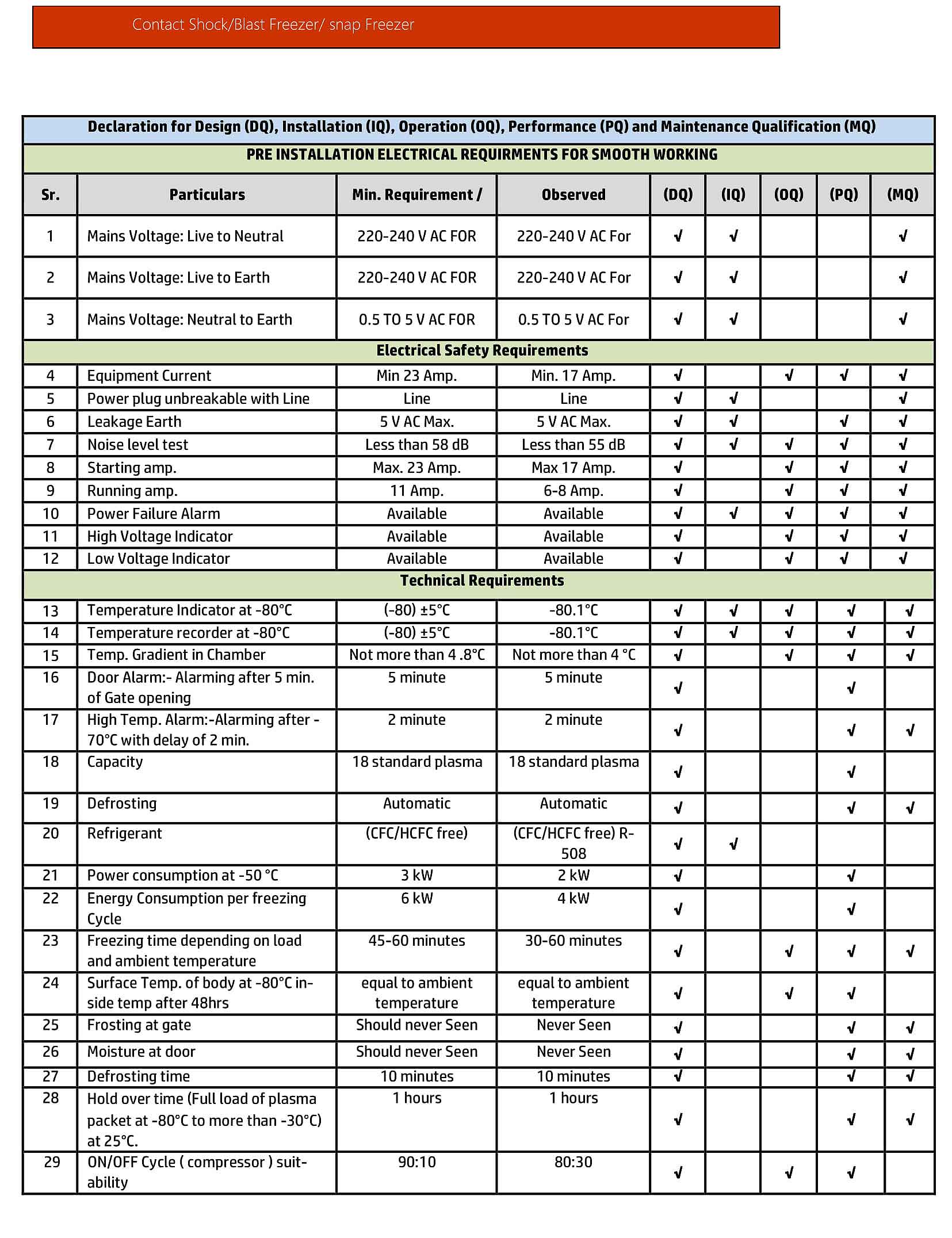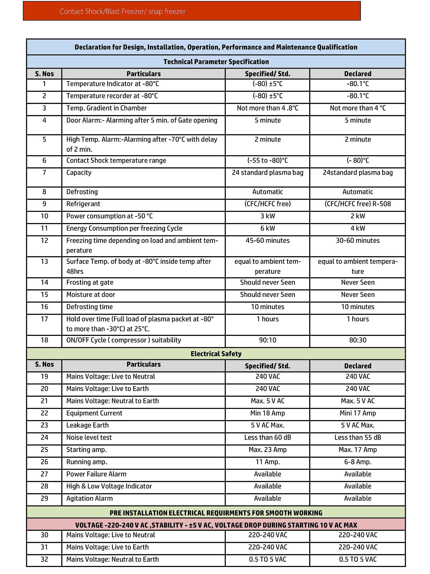 Purpose : To freeze the plasma to a core temperature of –40°C within 40 minutes before its