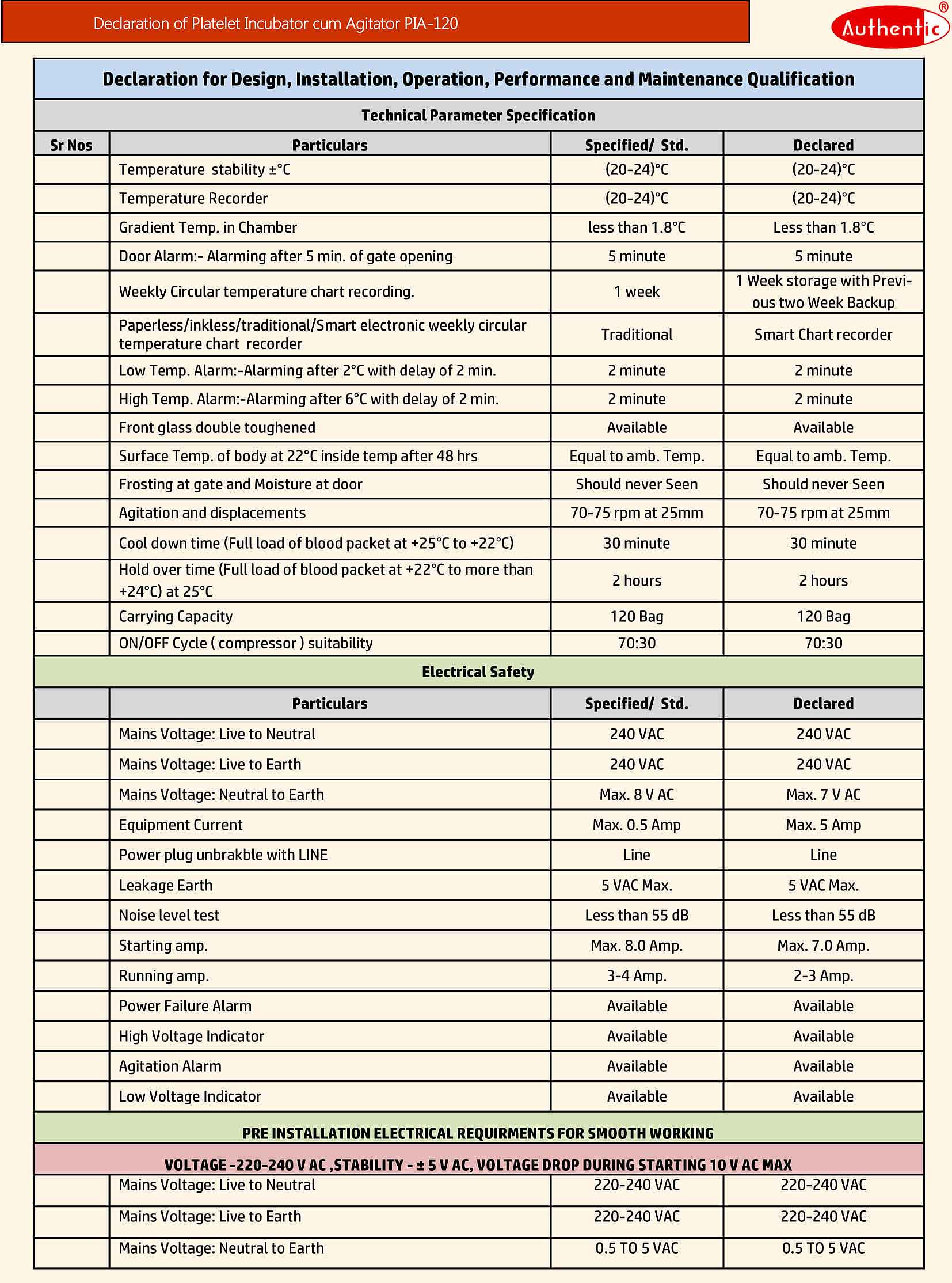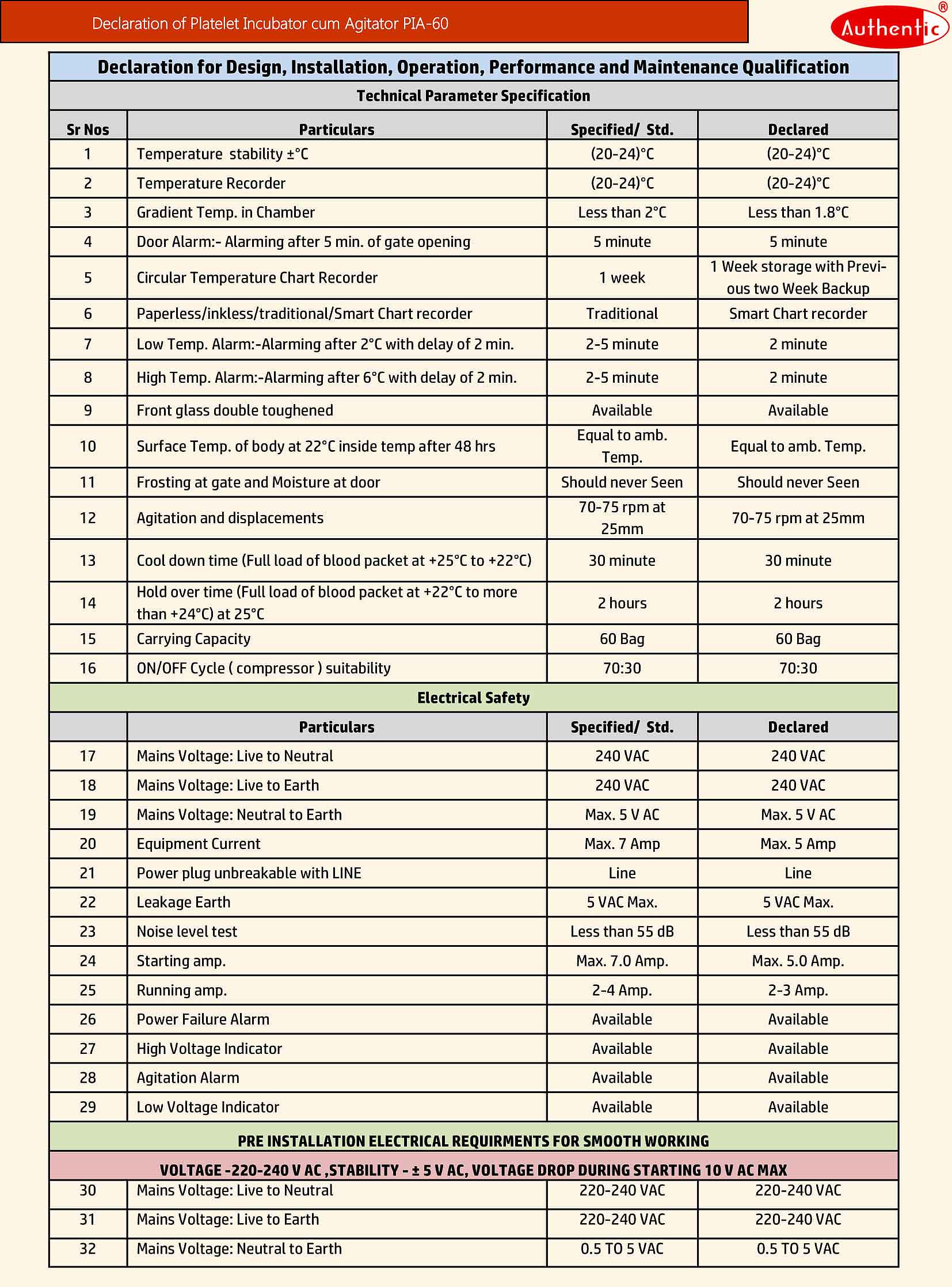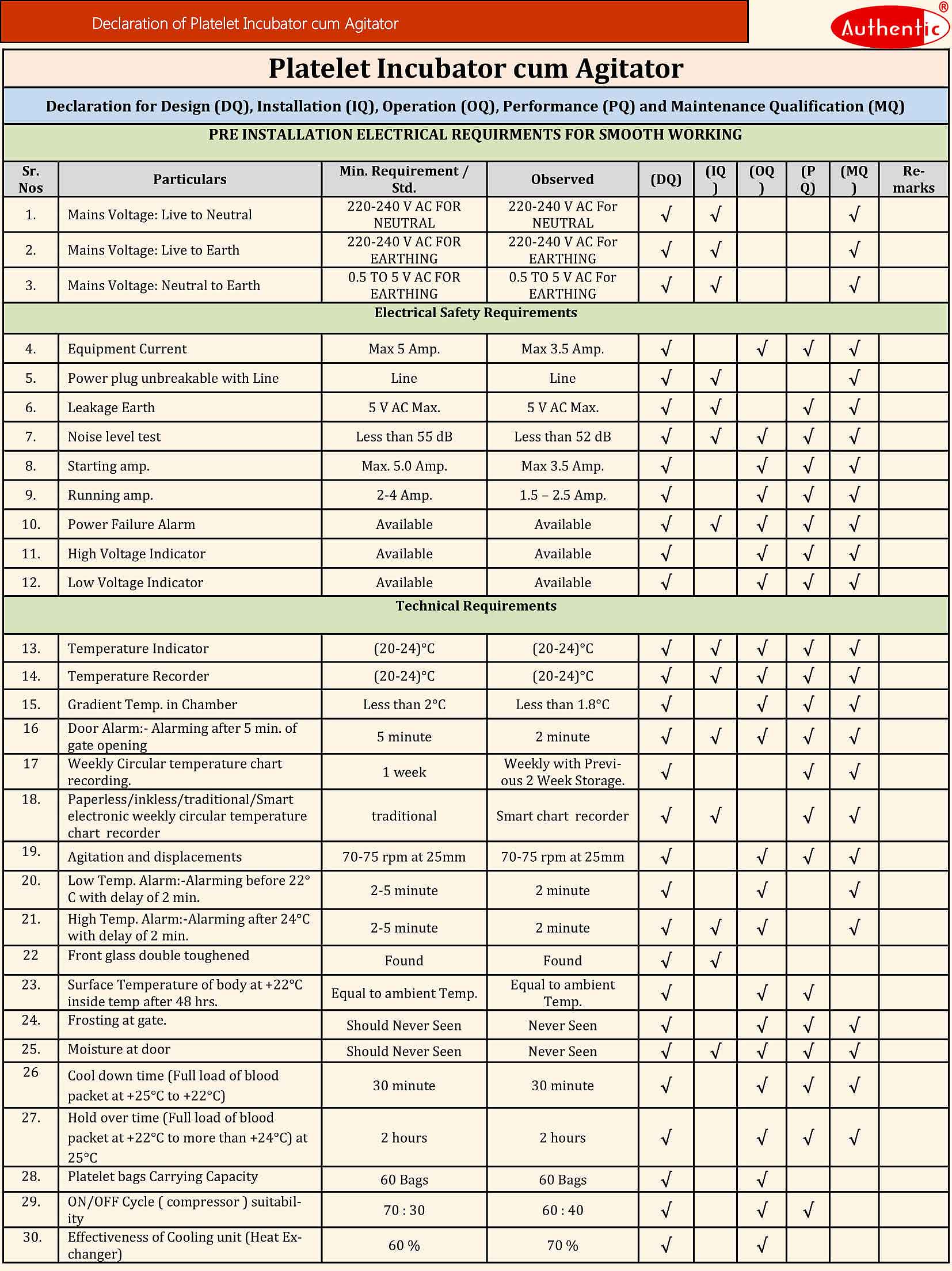 - Purpose : To agitate the Platelet Bags at 22°C so that
